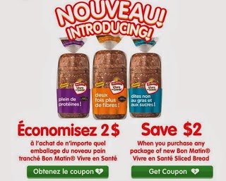 Coupon rabais 2$ sur les pains Vivre en Santé de Bon Matin