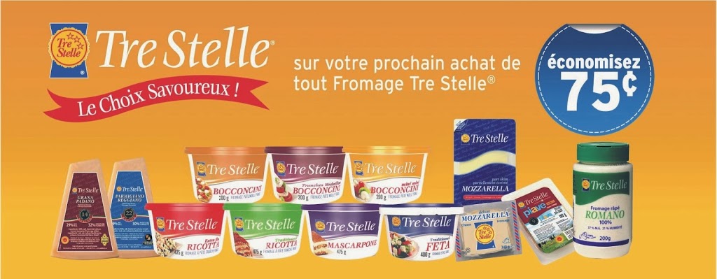 Coupon rabais de 0.75$ sur tout fromage Tre Stellé