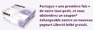 Partagez « une première fois » de votre tout-petit, et vous obtiendrez un coupon* échangeable contre un nouveau yogourt Liberté bébé gratuit.
