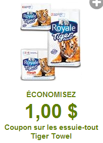 ÉCONOMISEZ 1,00 $ Coupon rabais sur les essuie-tout Tiger Towel.
