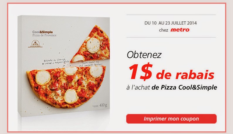 Obtenez 1$ de rabais à l’achat de Pizza Cool&Simple